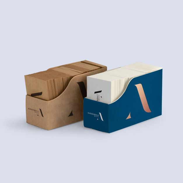Der Clou an unserem Visitenkartenhalter ist der individuelle Druck. Denn Sie allein entscheiden, wie die schöne Papierbox aussehen soll.