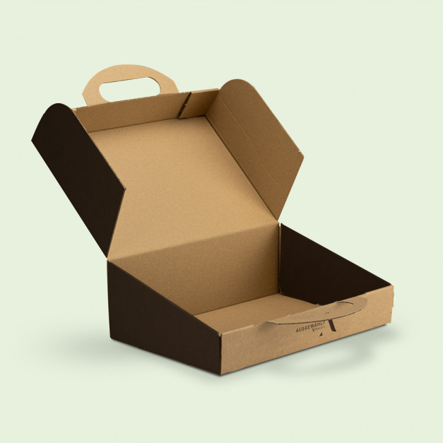 Übrigens: Schwarzes Design kommt auf unserer braunen Wellpappe besonders gut zur Geltung.