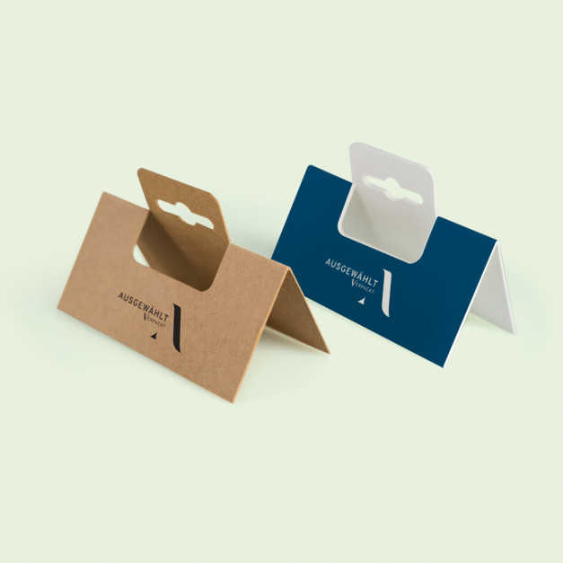 Sie haben außerdem die freie Auswahl aus vier hochwertigen Materialien: unserem hellweißen 400 g Chromosulfatkarton, dem besonders stabilen 450g Chromosulfatkarton mit samtiger Oberfläche, unserem nachhaltigen 330 g Kraftkarton braun oder unserem 390 g Kraftkarton braun / weiß. Egal, für welches Material Sie sich entscheiden: Indem Sie Ihre Kartonreiter individuell bedrucken, verleihen Sie ihnen einen ganz besonderen, einzigartigen Look.