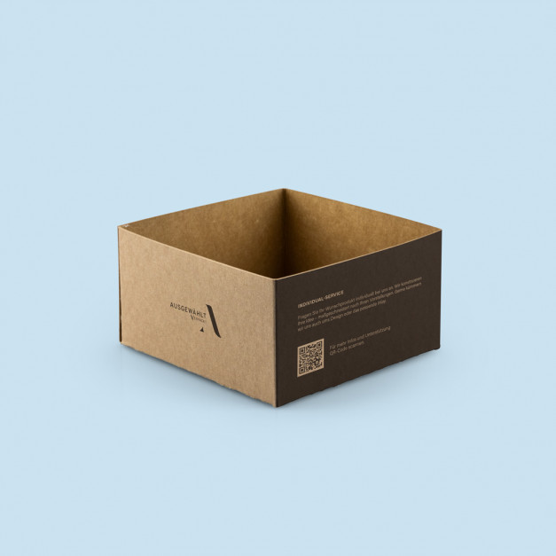 Auch beim Material haben Sie die Auswahl: Passt unser hellweißes Budget-Material 400 g Chromosulfatkarton für Preisbewusste, das stabile Exklusiv-Material 450 g Chromosulfatkarton mit samtiger Oberfläche oder das nachhaltige Umwelt-Material 330 g Kraftkarton braun aus 100 % Recyclingfasern am besten zu Ihrer Produktverpackung?