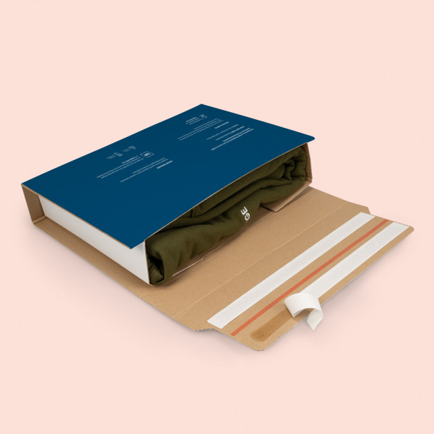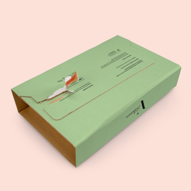 Die flachliegenden Wickelverpackungen lassen sich einfach aufrichten und befüllen. Der praktische, zweifache Selbstklebeverschluss hilft sowohl Ihnen beim sicheren Verschließen des Kartons als auch Ihren Kunden, falls diese ihre Ware als Retoure zurückschicken möchten. Wickeln Sie den Karton eng um die Sendung und verschließen Sie ihn mit dem ersten Selbstklebeverschluss. So vermeiden Sie Hohlräume und können auf zusätzliches Füllmaterial verzichten. Der dafür vorgesehene Verschlussstreifen entwickelt optimale Klebekraft durch festes Andrücken. Der Empfänger öffnet die Verpackung mühelos und bequem mithilfe des Aufreißfadens. Möchte er sein Paket anschließend zurückschicken, nutzt er dafür den zweiten Klebeverschluss.